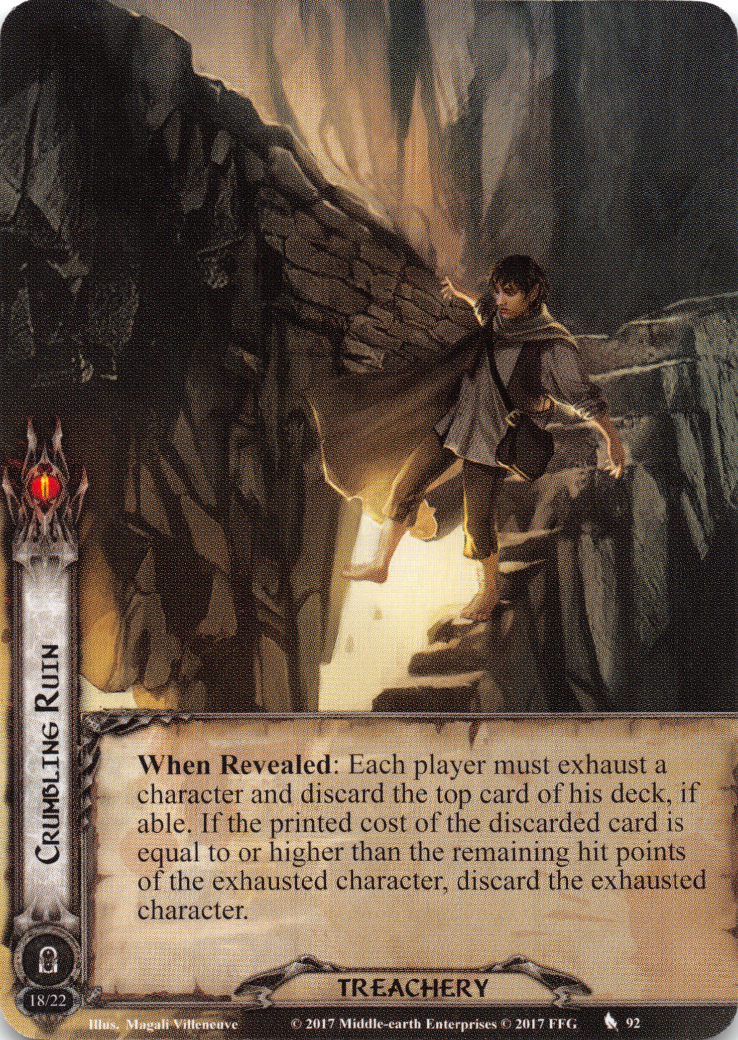 When Revealed: Each player must exhaust a character and discard the top card of his deck, if able. If the printed cost of the discarded card is equal to or higher than the remaining hit points of the exhausted character, discard the exhausted character.