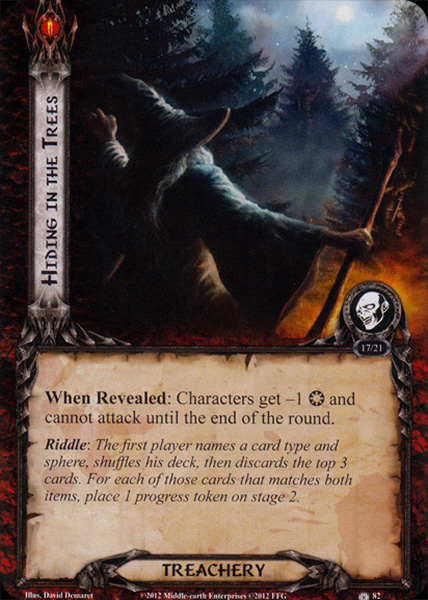 Riddle: The first player names a card type and sphere, shuffles his deck, then discards the top 3 cards. For each of those cards that matches both items, place 1 progress token on stage 2.