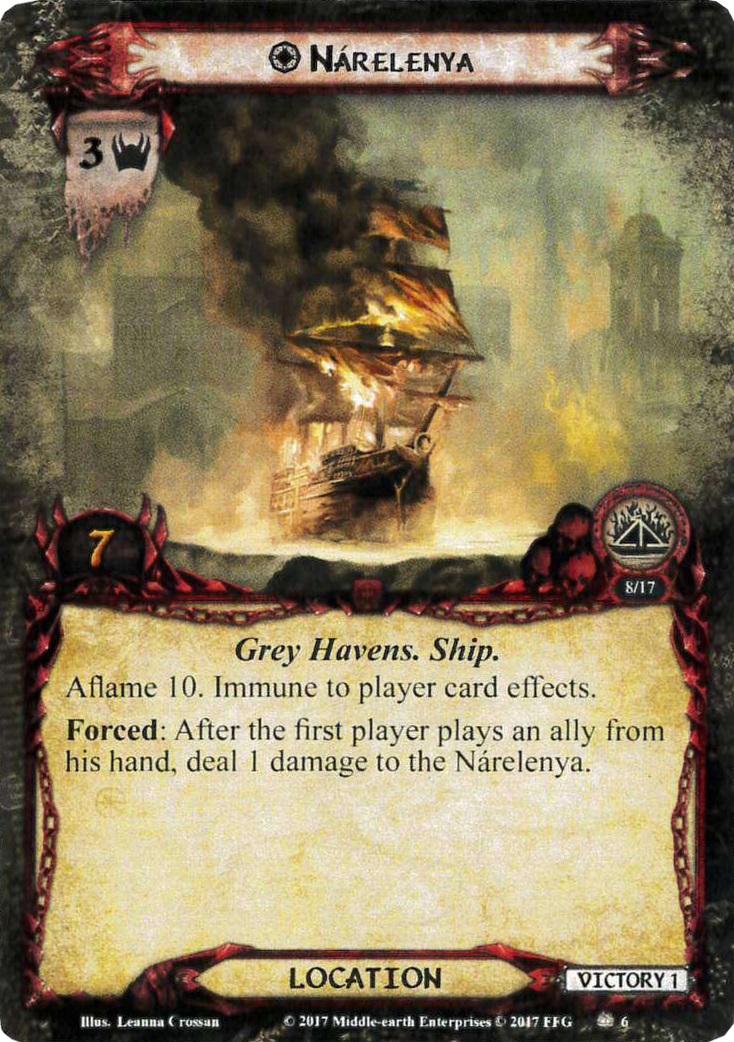 Forced: After the first player plays an ally from his hand, deal 1 damage to the N relenya.