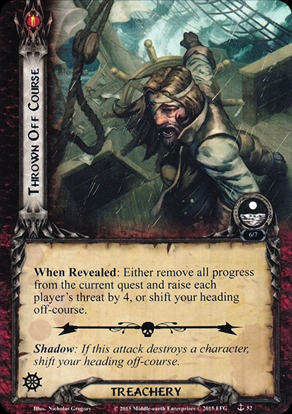 When Revealed: Either remove all progress from the current quest and raise each player's threat by 4, or shift your heading-off course.