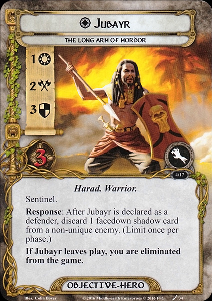 6 Response: After Beregond defends an attack and takes no damage, reduce the defending player's threat by 1. (Limit once per round.)