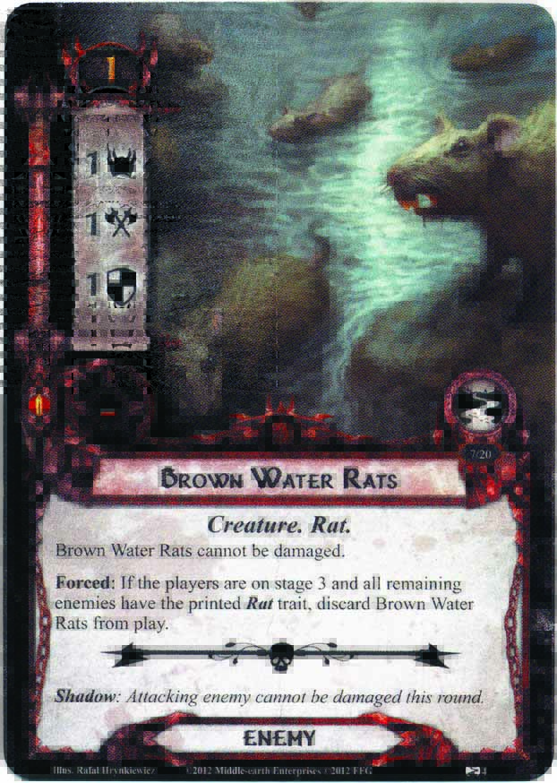 Forced: If the players are on stage 3 and all remaining enemies have the printed Rat trait, discard Brown Water Rats from play.