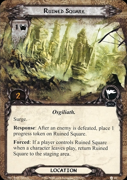 Forced: If a player controls Ruined Square when a character leaves play, return Ruined Square to the staging area.