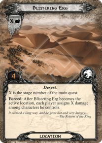 Forced: After Blistering Erg becomes the active location, each player assigns X damage among characters he controls.