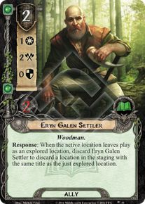 Response: When the active location leaves play as an explored location, discard Eryn Galen Settler to discard a location in the staging with the same title as the just explored location.