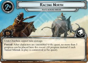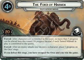 Setup: Set Ford of Harnen and 1 copy of Uruk Warg-rider aside, out of play. Each player takes control of a Tamed Mumak. Remove each remaining Tamed Mumak from the game. Create the Orc's area with a second quest deck consisting of stage 1C, 2C, 3C, and 4C as well as Uruk Chieftain.