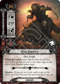 Shadow: If the players are not at the same stage as the Orcs, put Uruk Pursuer into play engaged with you.