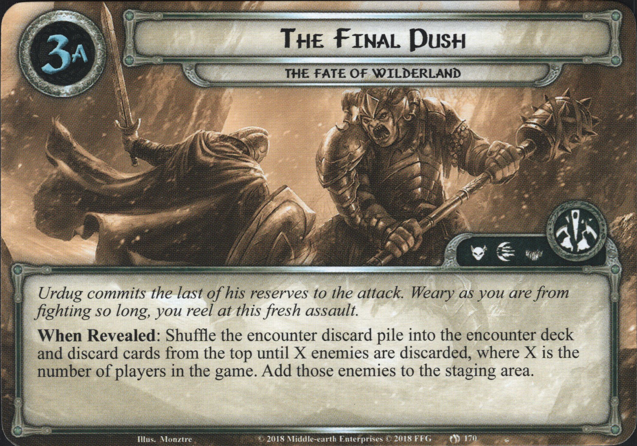When Revealed: Urdug makes an immediate attack against the first player. If this attack destroys a character, place 1 progress on The Goblins' Assault.