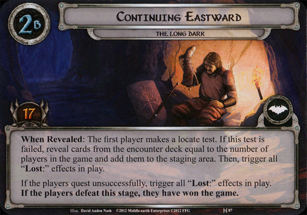 Each location gets +1 Threat. If the players quest unsuccessfully, trigger all "Lost:" effects in play.