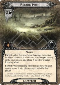 Forced: After Reeking Moat becomes the active location, choose a non-unique, non-Nazgûl enemy in the staging area and place it facedown under Reeking Moat.