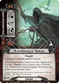 While Ringwraith of Sauron is in the staging area it gains:"Forced: After a player fails a Fortitude test, Ringwraith of Sauron engages that player and makes an immediate attack."