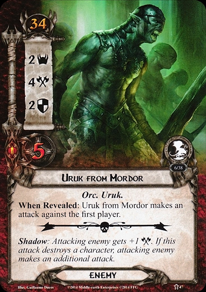 When Revealed: Uruk from Mordor makes an immediate attack against the first player.