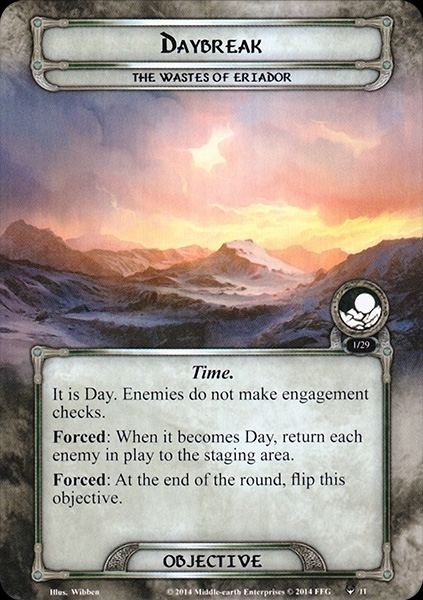 When Revealed: If it is Night, raise each player's threat by 4. If it is Day, flip the Time objective to Nightfall.