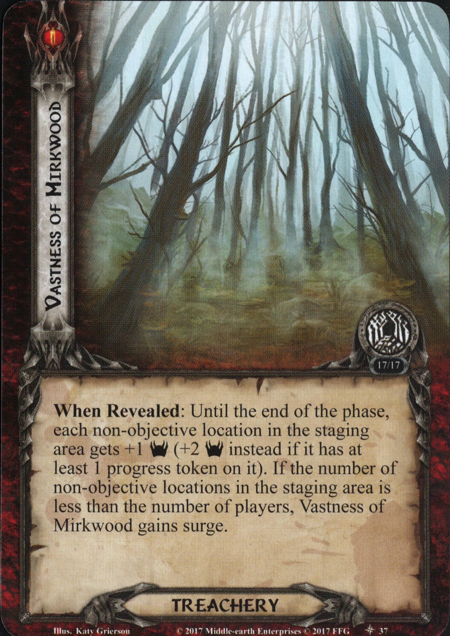 instead if it has at least 1 progress token on it). If the number of non-objective locations in the staging area is less than the number of players, Vastness of Mirkwood gains surge.