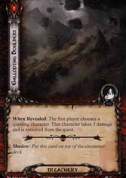 When Revealed: The first player chooses a questing character. That character takes 3 damage and is removed from the quest.