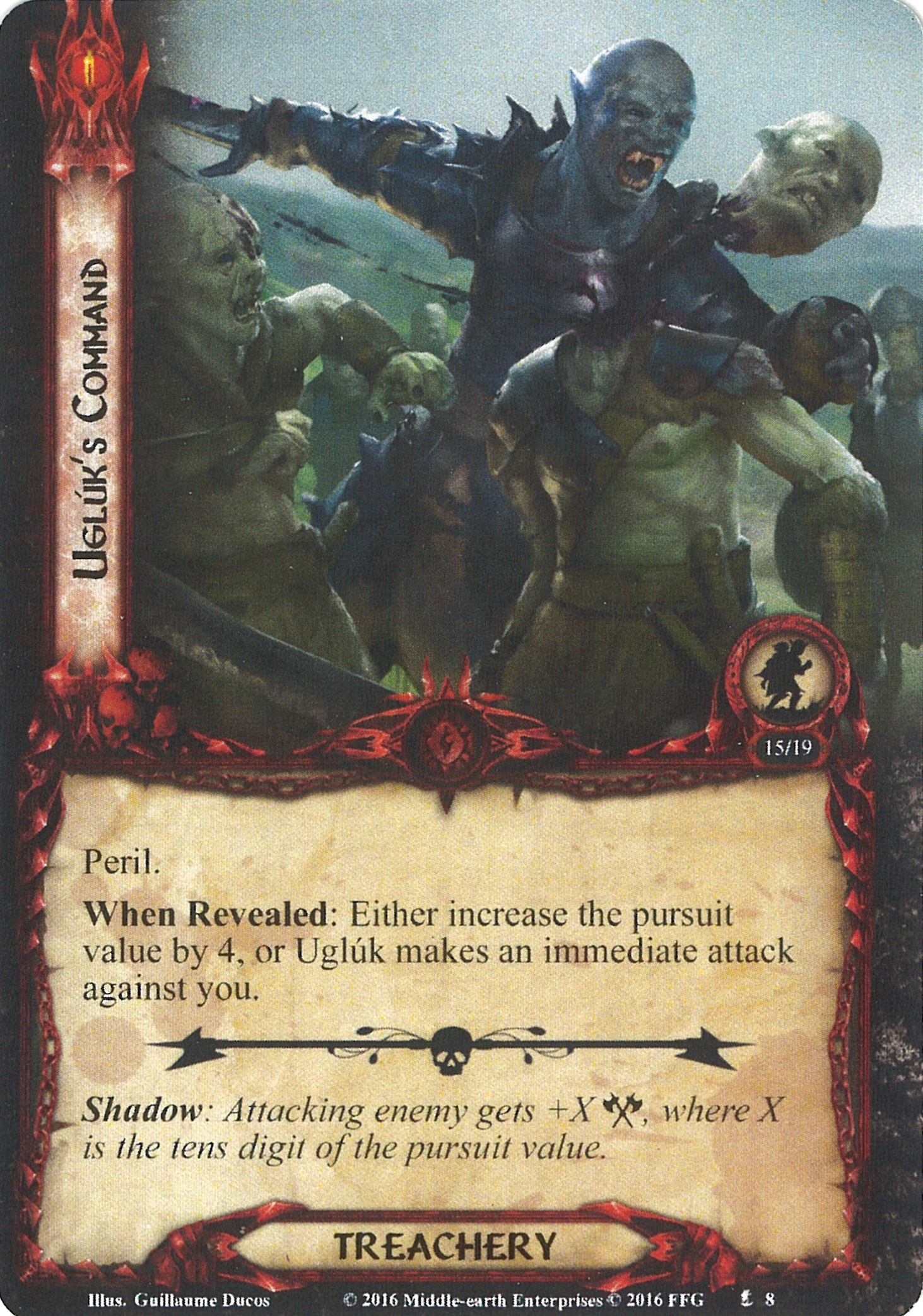 When Revealed:  Either increase the pursuit value by 4, or Uglúk makes an immediate attack against you.