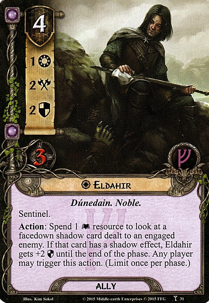 4 Response: After Gimli is declared as a defender, spend 1 resource from his pool to ready another hero. If that hero is Legolas, he gets +1
