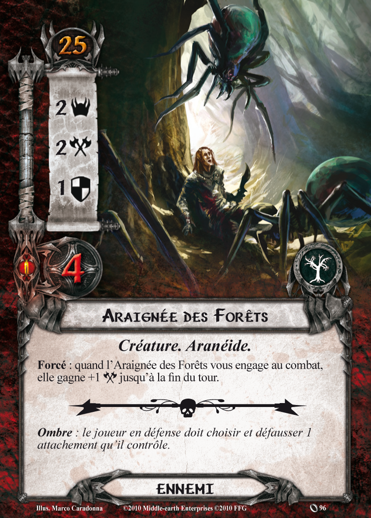 Forced: After Forest Spider engages a player, it gets +1 Attack until the end of the round.