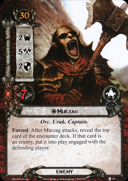 Murzag cannot leave play unless destroyed. If Murzag is defeated, advance to the next stage.