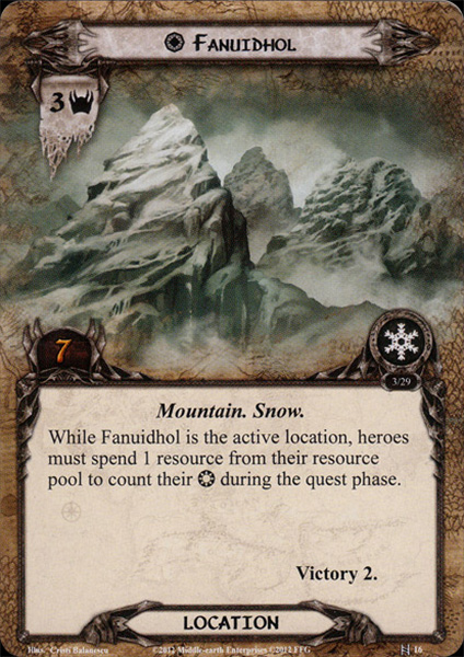 Setup: Add Caradhras to the staging area. Remove all copies of Snowstorm from the encounter deck and set them aside, out of play. Put Arwen Undómiel into play under the control of the first player.
