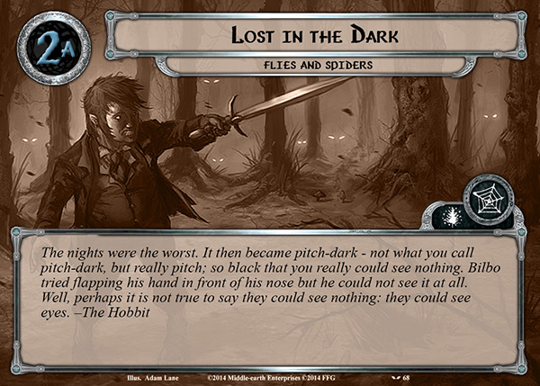 The nights were the worst. It then became pitch–dark – not what you call pitch–dark, but really pitch, so black that you really could see nothing. Bilbo tried flapping his hand in front of his nose but he could not see it at all. Well, perhaps it is not true to say they could see nothing: they could see eyes. –The Hobbit