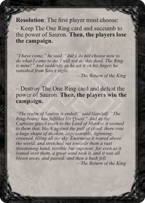Resolution: The first player must choose: - Keep The One Ring card and succumb to the power of Sauron. Then, the players lose the campaign.