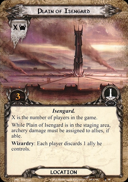While Plain of Isengard is in the staging area, archery damage must be assigned to allies, if able.