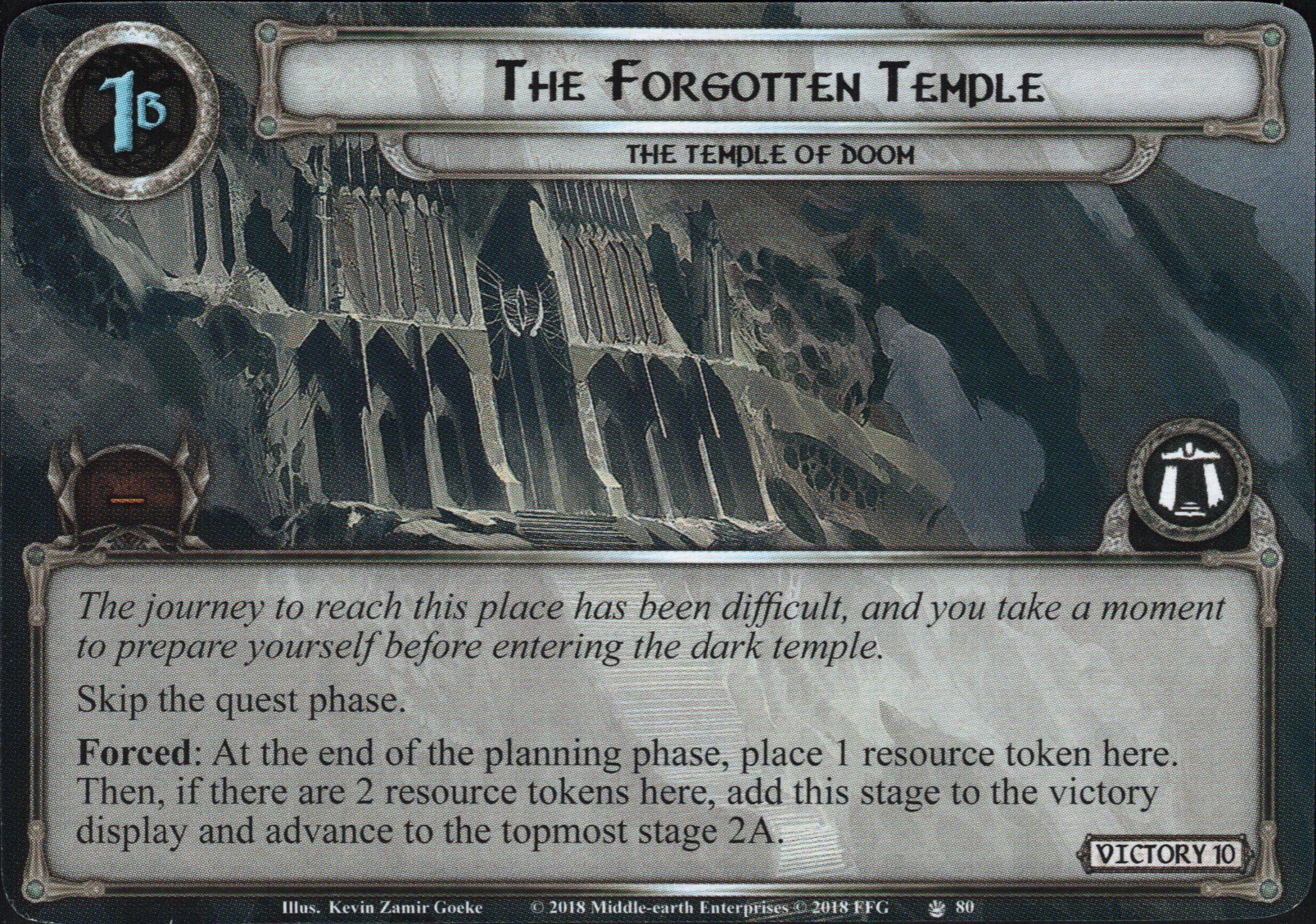 Forced: At the end of the planning phase, place 1 resource token here. Then, if there are 2 resource tokens here, add this stage to the victory display and advance to the topmost stage 2A.