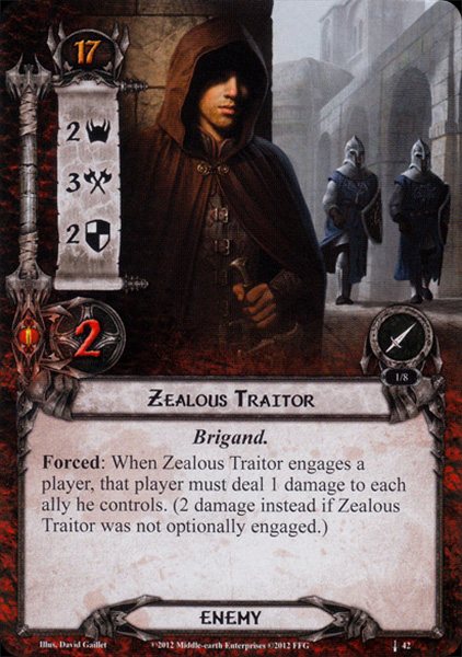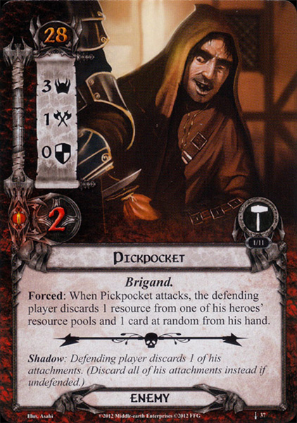 Forced: After a shadow effect dealt to Nazgûl of Dol Guldur resolves, the engaged player must choose and discard 1 character he controls.