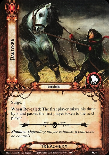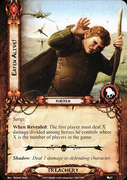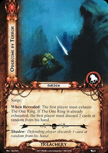 When Revealed: The first player must exhaust The One Ring. If The One Ring is already exhausted, the first player must discard 2 cards at random from his hand.
