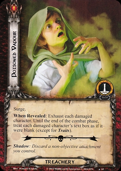When Revealed: The first player chooses a Clue card attached to a hero and attaches it to a Mordor enemy in play, if able.
