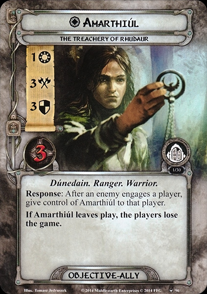While you are engaged with at least 2 enemies, add 1 additional resource to Amarthiúl's resource pool when you collect resources during the resource phase.