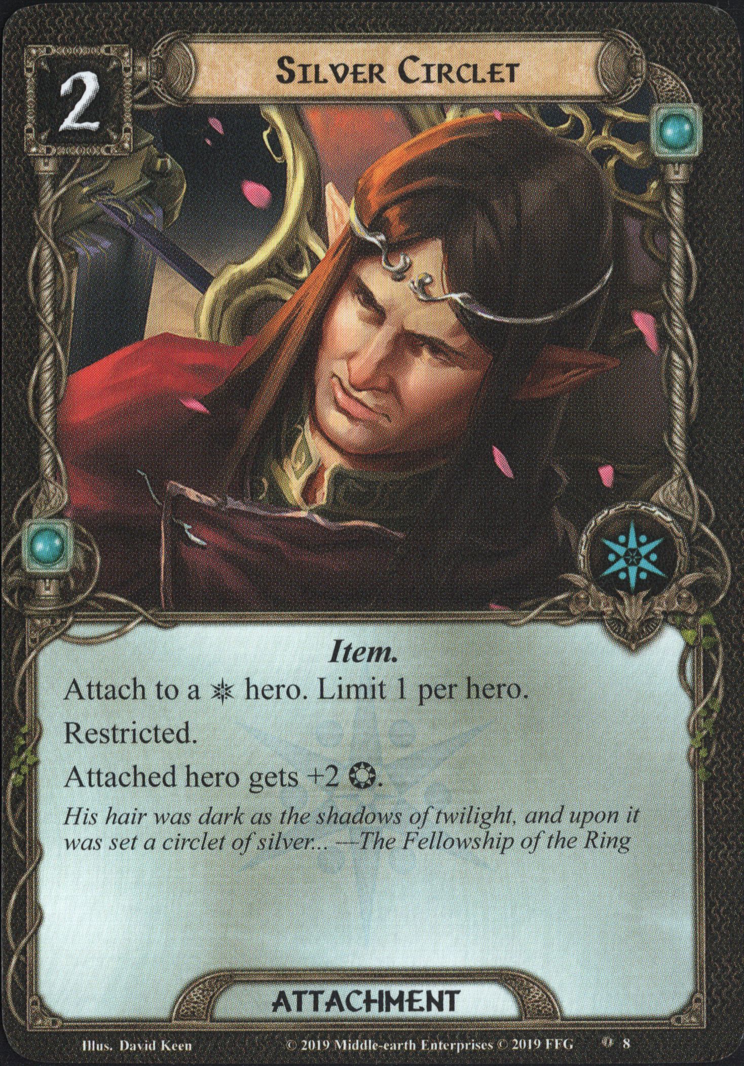 While attached hero is committed to the quest, each Hobbit character gets +1 ![]()