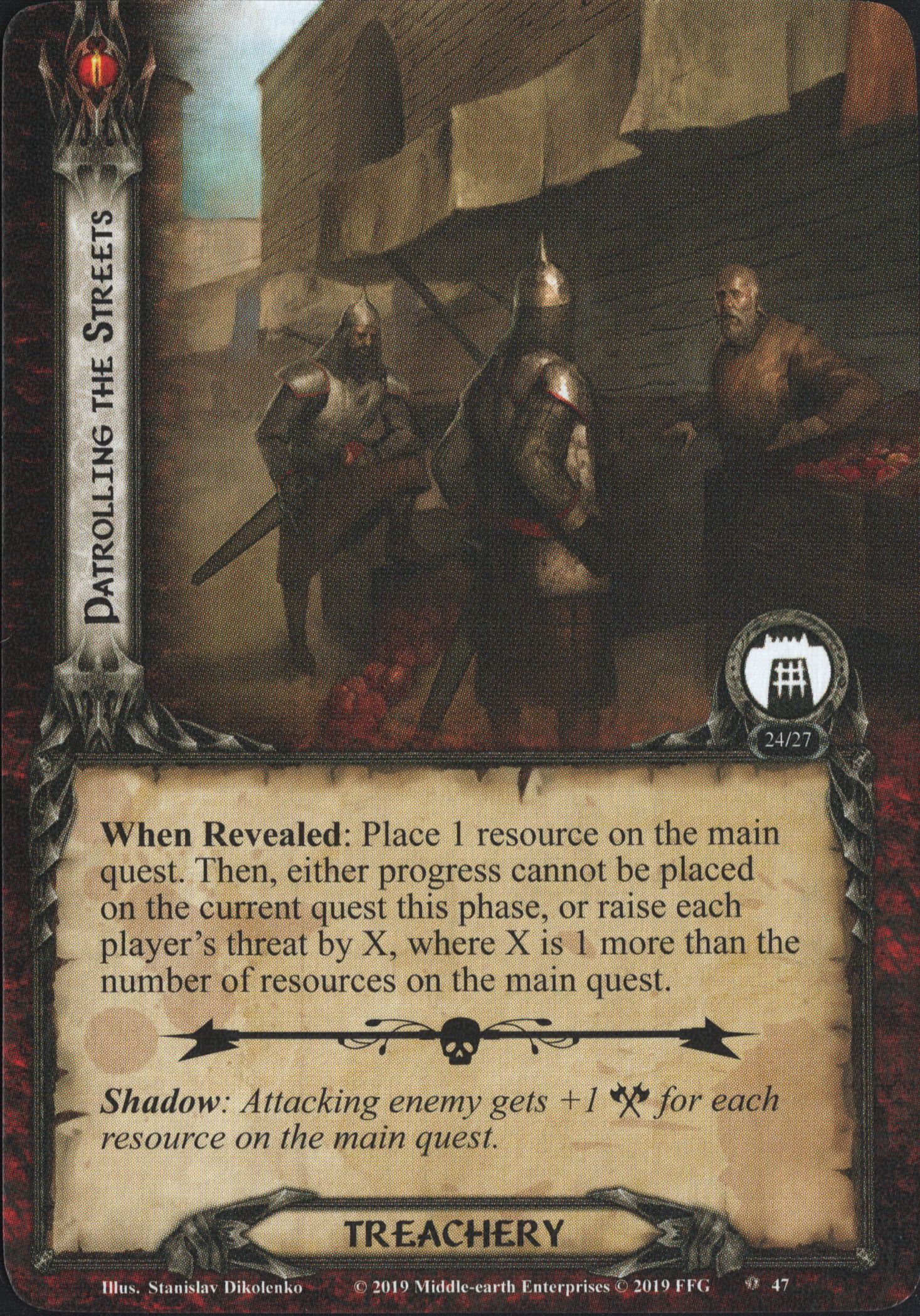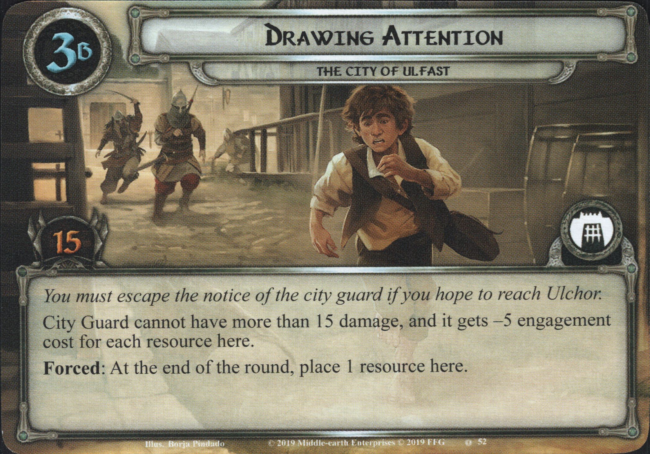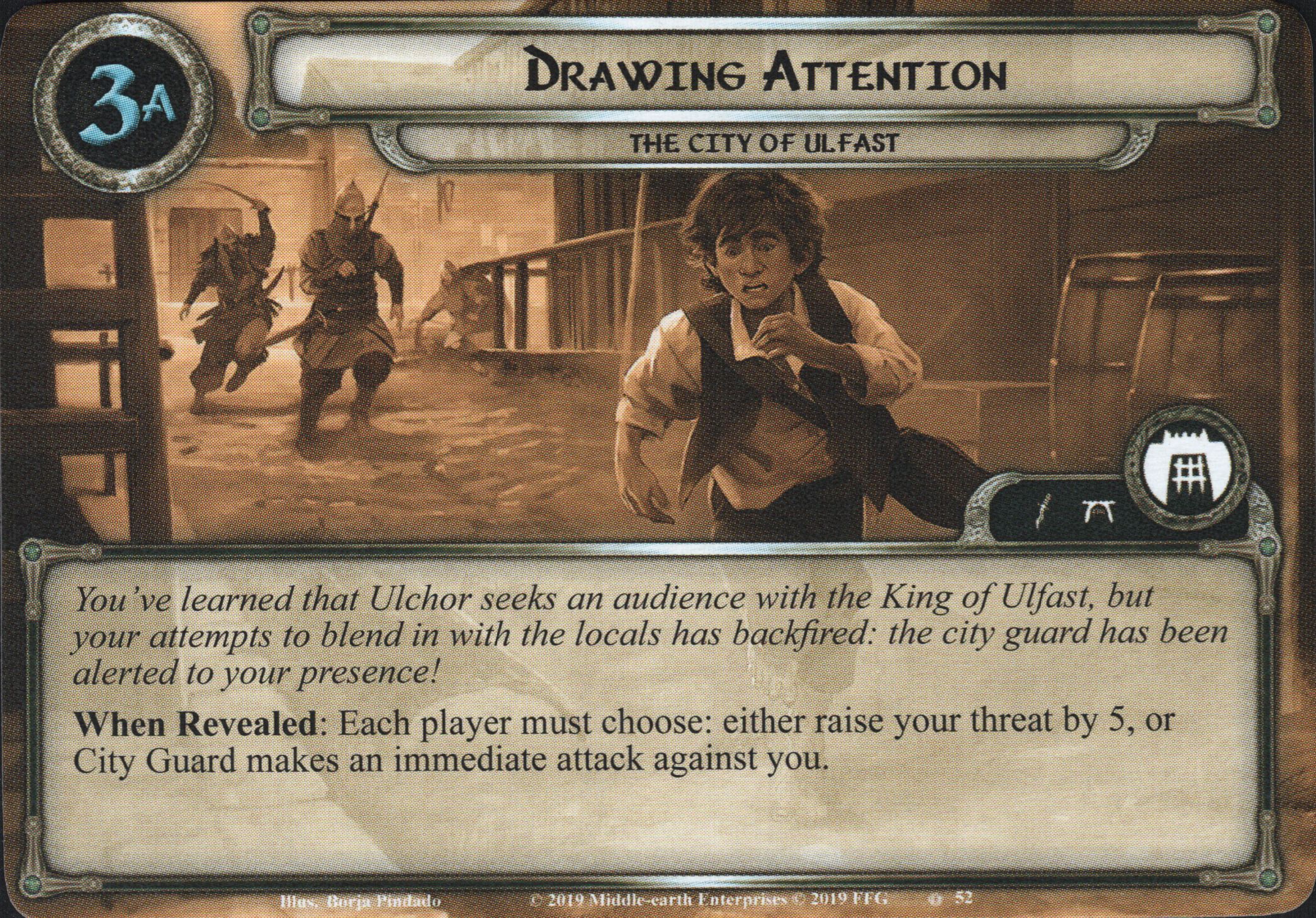 When Revealed: Each player must choose: either raise your threat by 5, or City Guard makes an immediate attack against you.