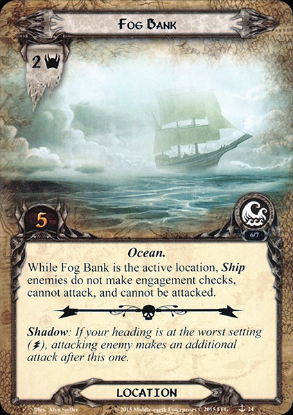 When Revealed: Search the encounter deck and discard pile for 1 copy of Fog Bank and add it to the staging area. Shuffle the encounter deck.