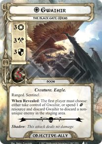 When Revealed: The first player must choose: either take control of Gwaihir, or spend 1 resource and discard Gwaihir to discard a non-unique enemy in the staging area.