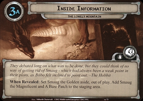 When Revealed: Set Smaug the Golden aside, out of play. Add Smaug the Magnificent and A Bare Patch to the staging area.