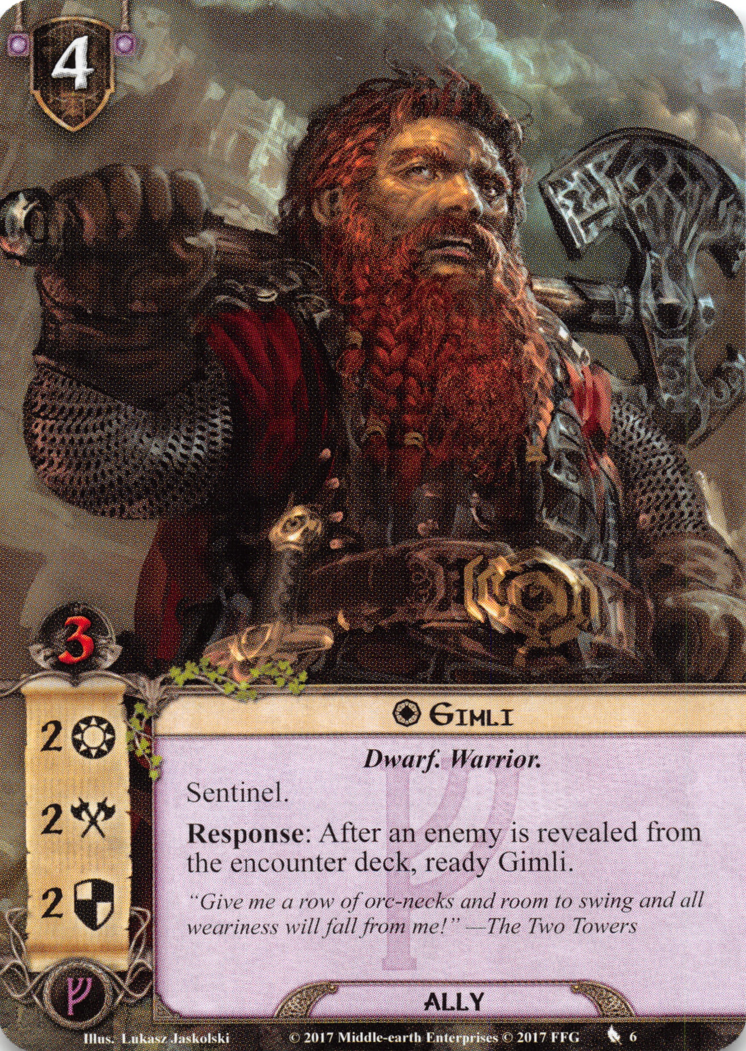 3 Response: After Grimbeorn the Old defends an attack, spend 1 resource from his pool to declare him as an attacker against that enemy (and resolve his attack). The defending enemy gets -2