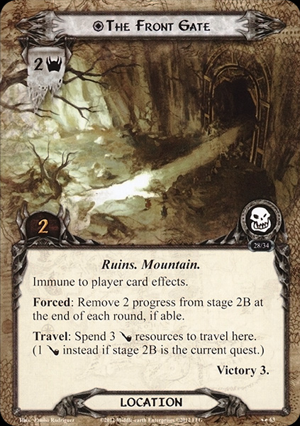 While Gate of Gundabad is in the staging area, resources cannot be placed on The Heroes' Defense.