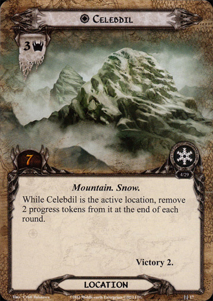 While Celebdil is the active location, remove 2 progress tokens from it at the end of each round.
